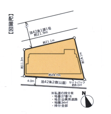 北側公道 幅員約21.9m・接道約21.1m